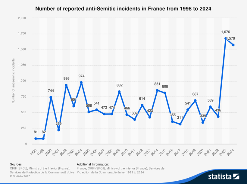 Od strašnej invázie Hamasu do južného Izraela 7. októbra 2023 dosiahol antisemitizmus vo Francúzsku alarmujúcu úroveň. Úrady zdokumentovali nárast antisemitských incidentov